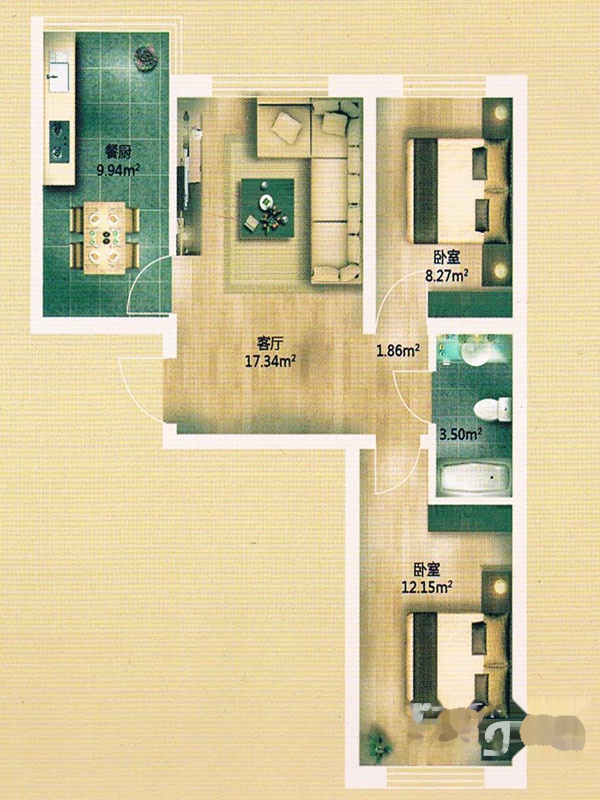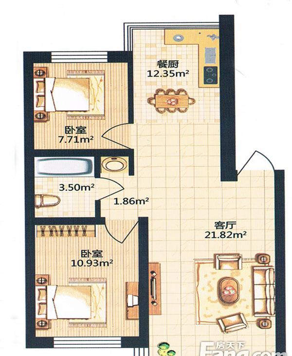 2室2厅1卫-金河湾小高层A户型