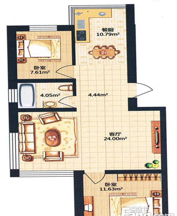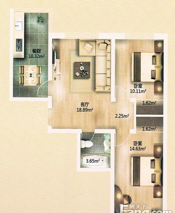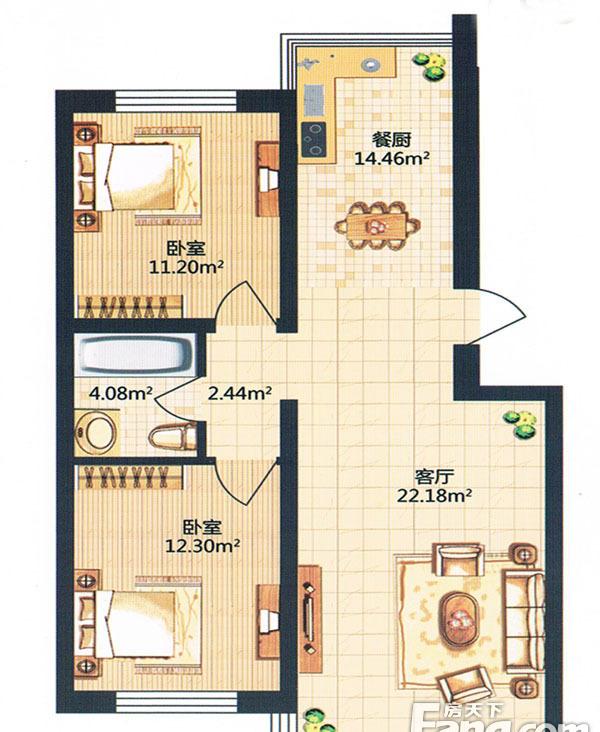 2室2厅1卫-金河湾小高层D户型