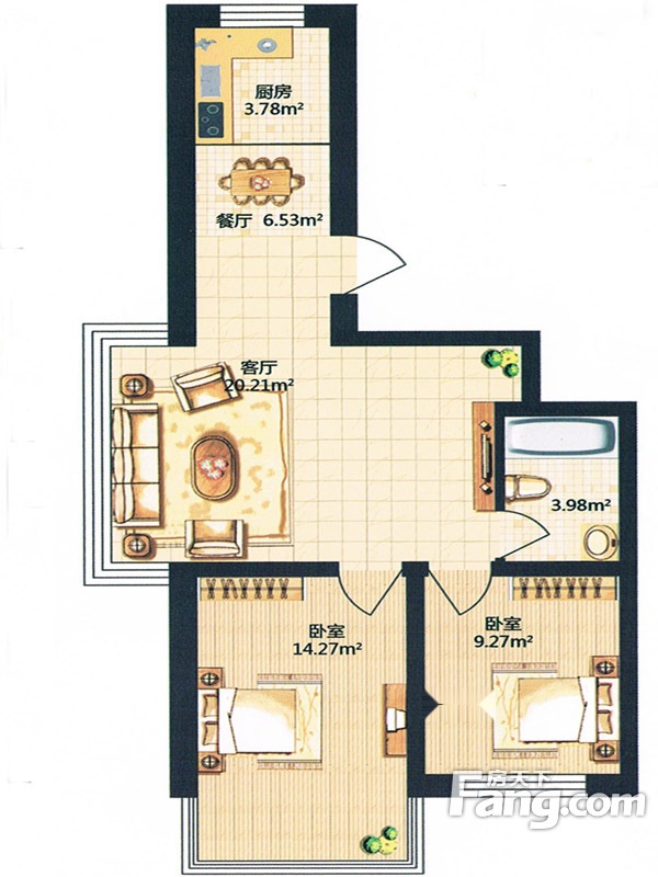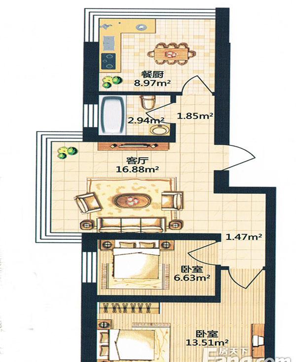 2室2厅1卫-金河湾小高层F户型
