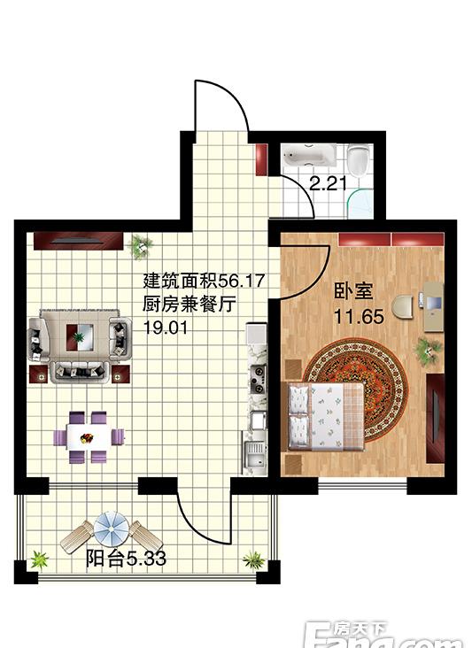 1室1厅1卫-1室1厅1卫户型56.17㎡