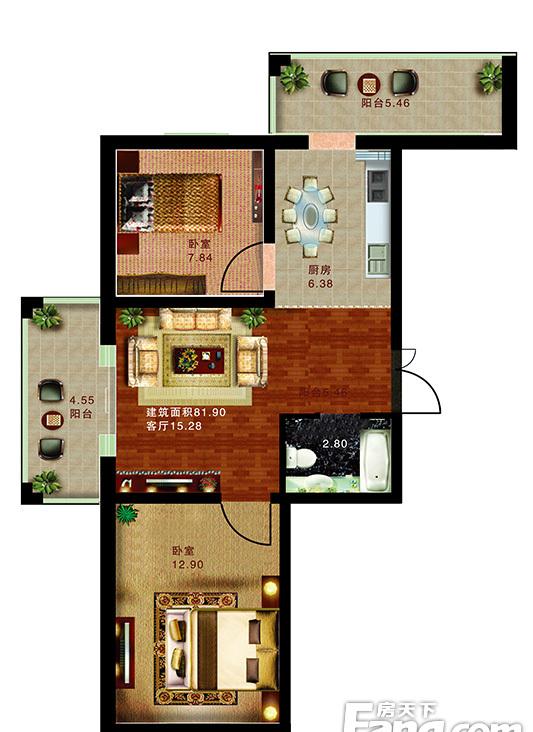 2室1厅1卫-2室1厅1卫户型81.9㎡