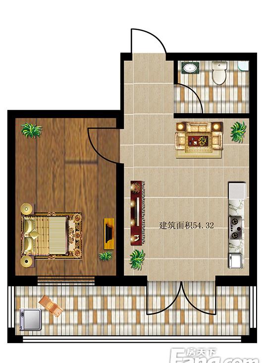 1室1厅1卫-1室1厅1卫户型54.32㎡
