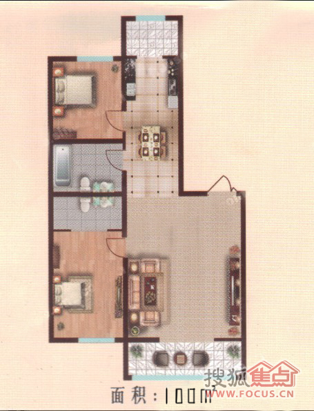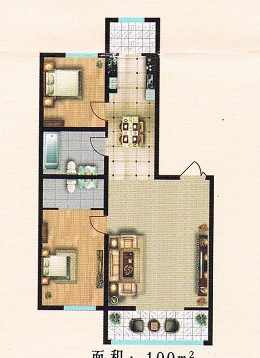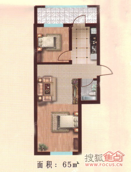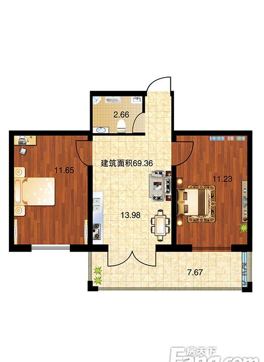 2室1厅1卫-2室1厅1卫户型69.36㎡