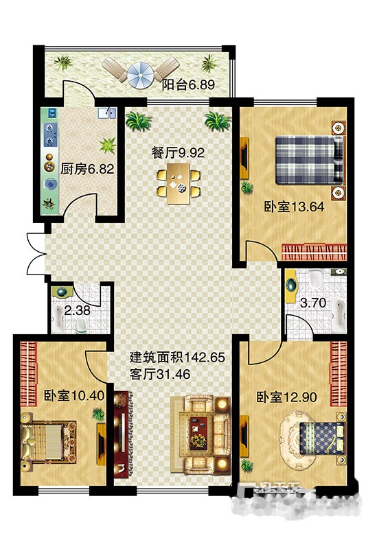 3室2厅2卫-2室2厅2卫户型142.56㎡