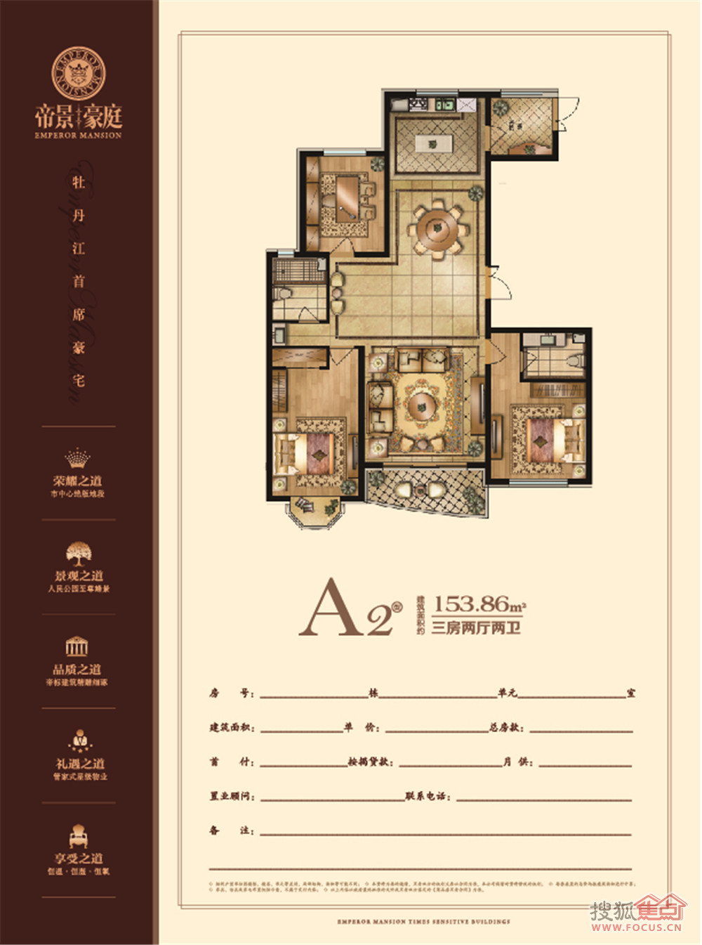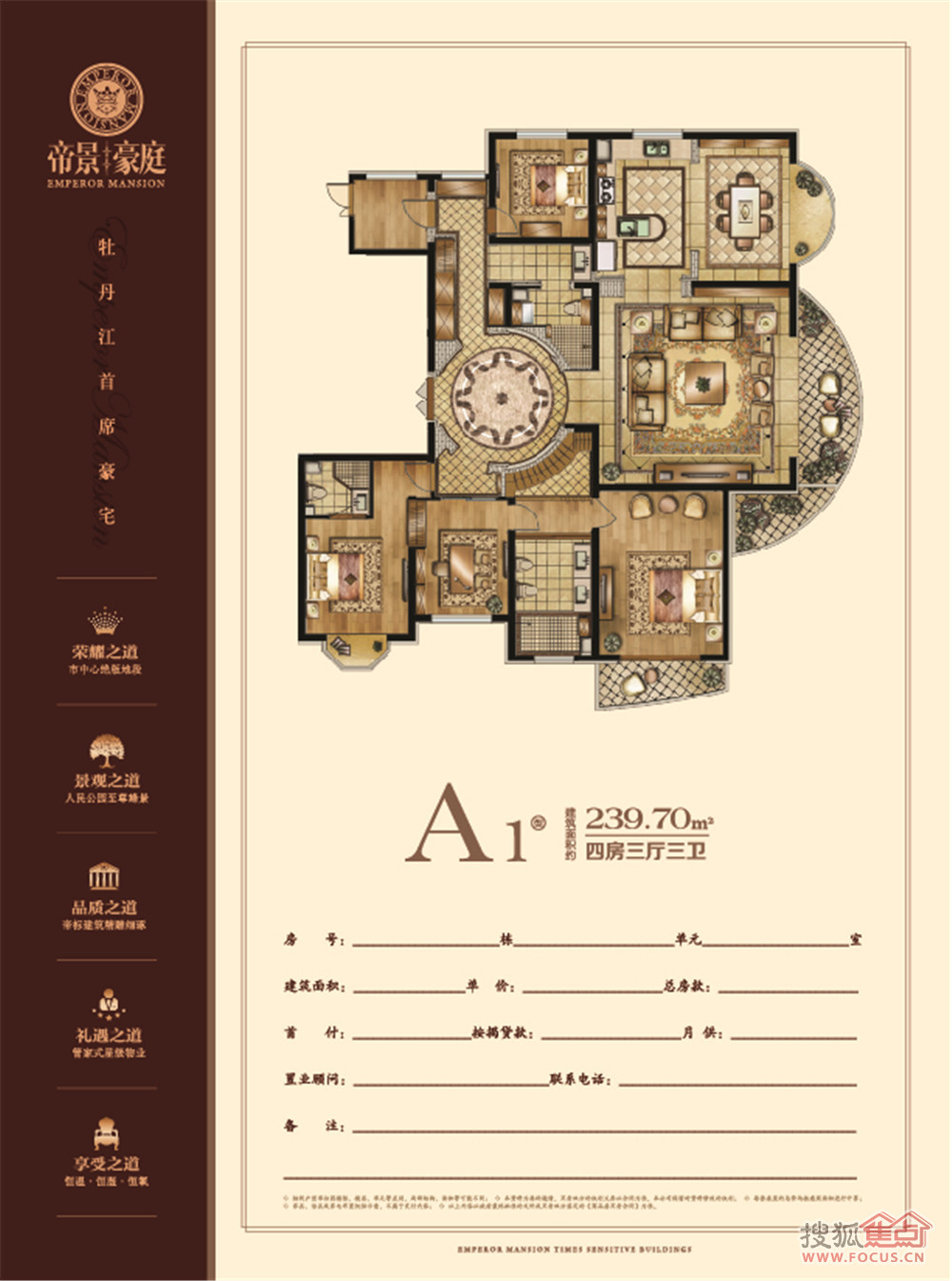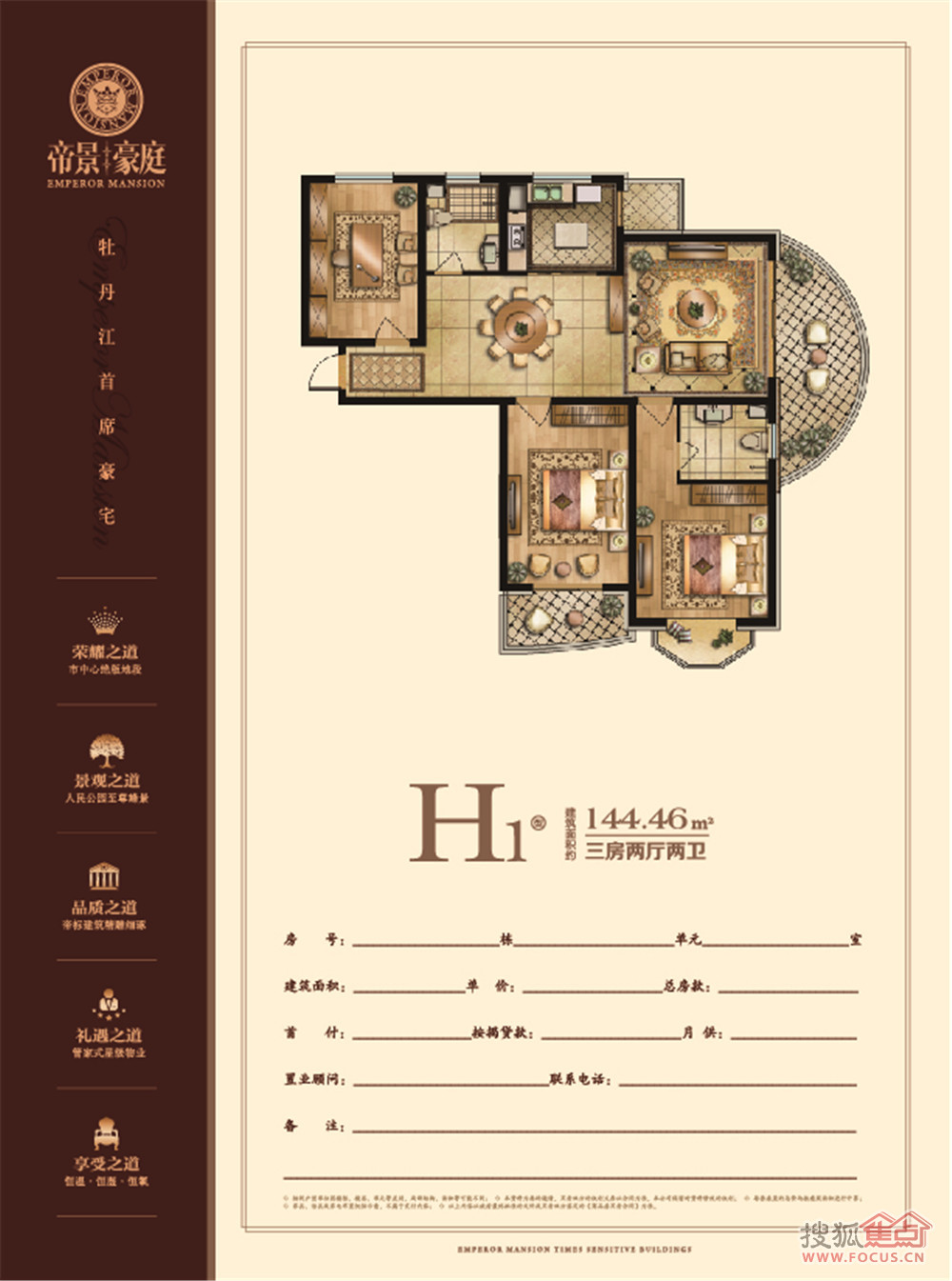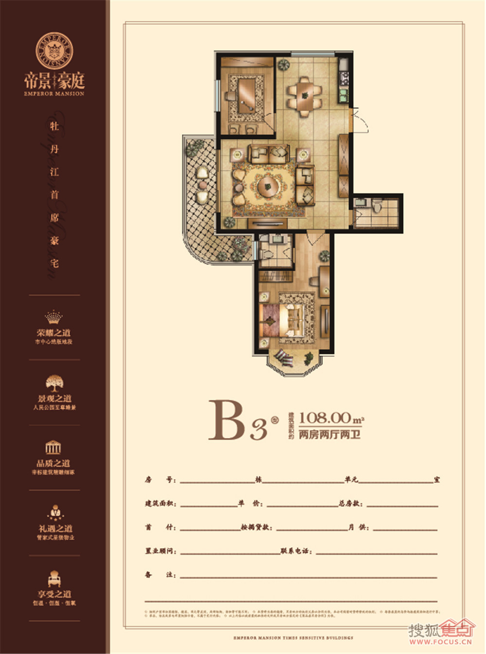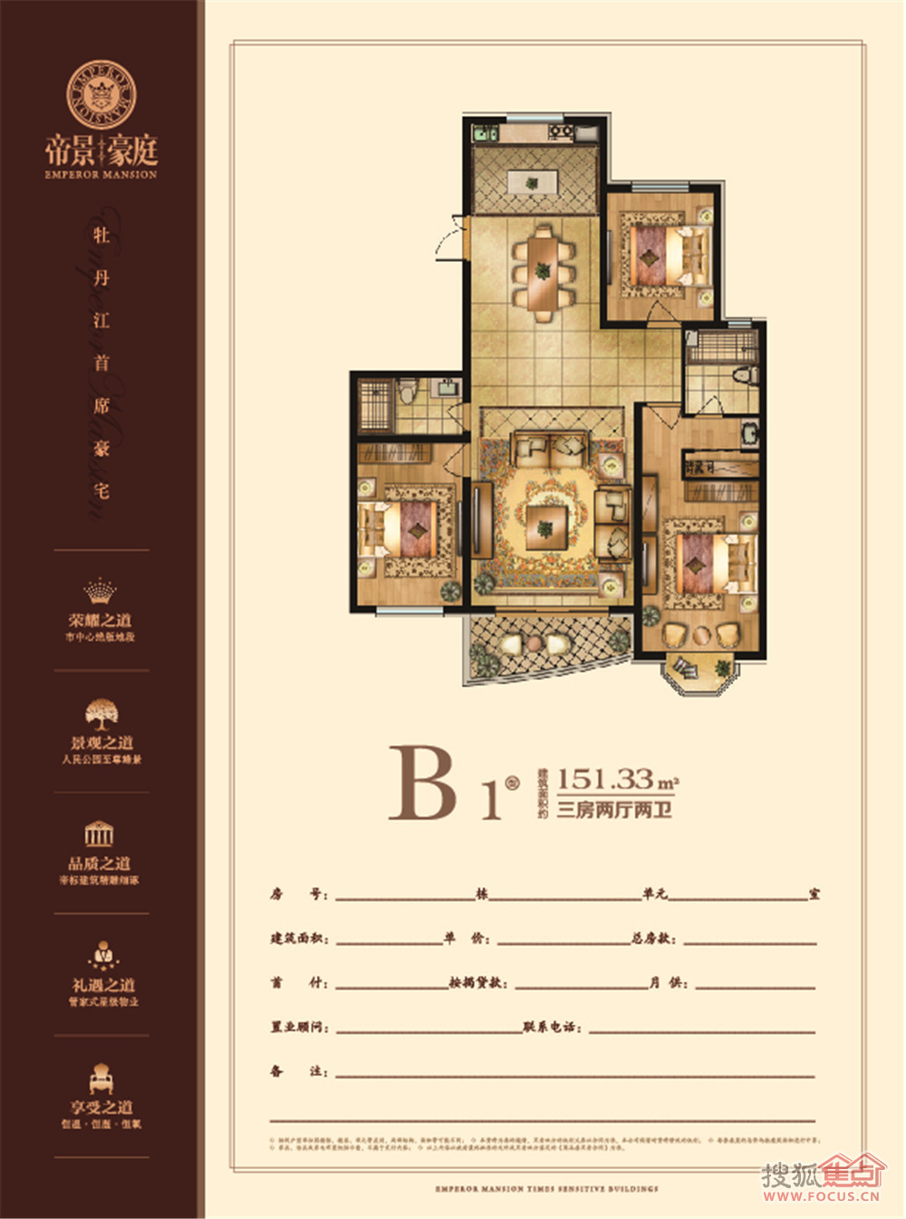 本项目的公共部位,包括进户大堂、电梯间、前室、楼道及地下室等均进行高标准装修,给予每位帝景豪庭的业主提供少有的尊崇感。