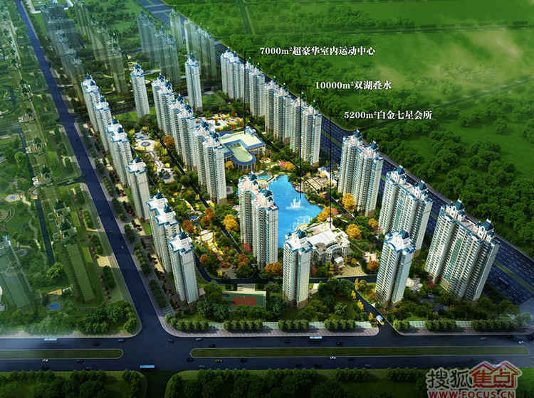 5200平方米白金七星会所,7000平方米室内运动中心,3000平方米北大学院幼儿园