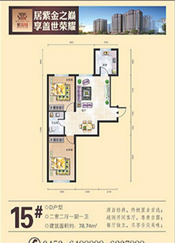户型面积65-125平方米,可以满足不同人群的居住需求,项目南侧临江,是不可多得的江景房。紫金城的建筑设计由著名的深圳清华苑设计团队倾力打造,17层优质建筑形态,将几何图形和装饰线条融入建筑立面,横向利用整体凹凸形成高立挺拔,纵向通过飘窗,几何腰线等细部装饰展现优雅摩登的建筑风格。高级涂料与彩色易洁面砖相结合,颜色深浅对比,朴质典雅。