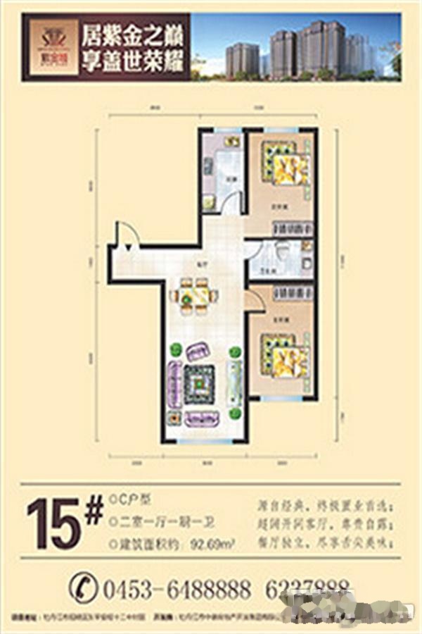 “紫金城”项目总建筑面积30万平方米,占地面积12万平方米,并拥有大型地下停车场。社区主题鲜明,布局规划合理,建筑错落有致,力求较大限度达到户户有阳光、家家有风景的设计理念。紫金城商业建筑面积近2万平方米,与牡丹江对岸的阳明新城成对望之势,未来升值空间巨大。