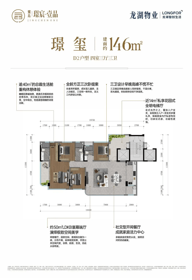 鹭岛·璟宸壹品主打建面约113-146㎡的全系四房产品,所有户型均实现高得房率,并配备一线品牌豪装,兼顾了空间实用性与居住舒适度。