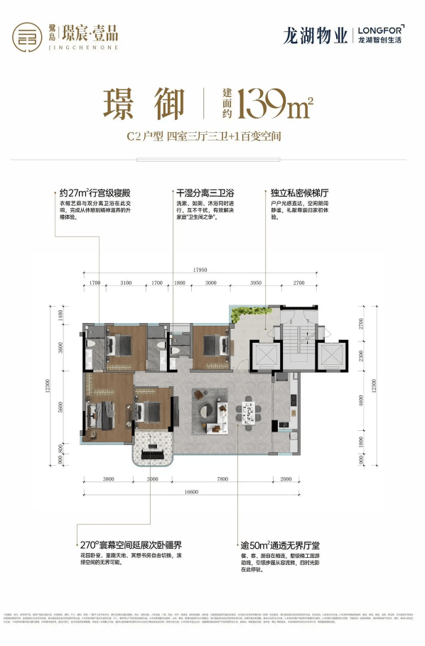 建面约139㎡四房三厅三卫