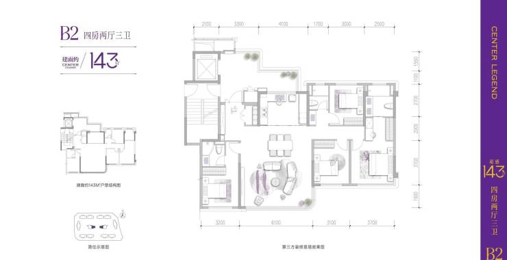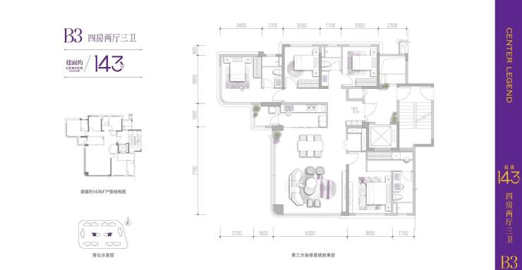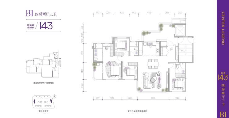 建面约143㎡ | 超感四房•光厅双厅三卫