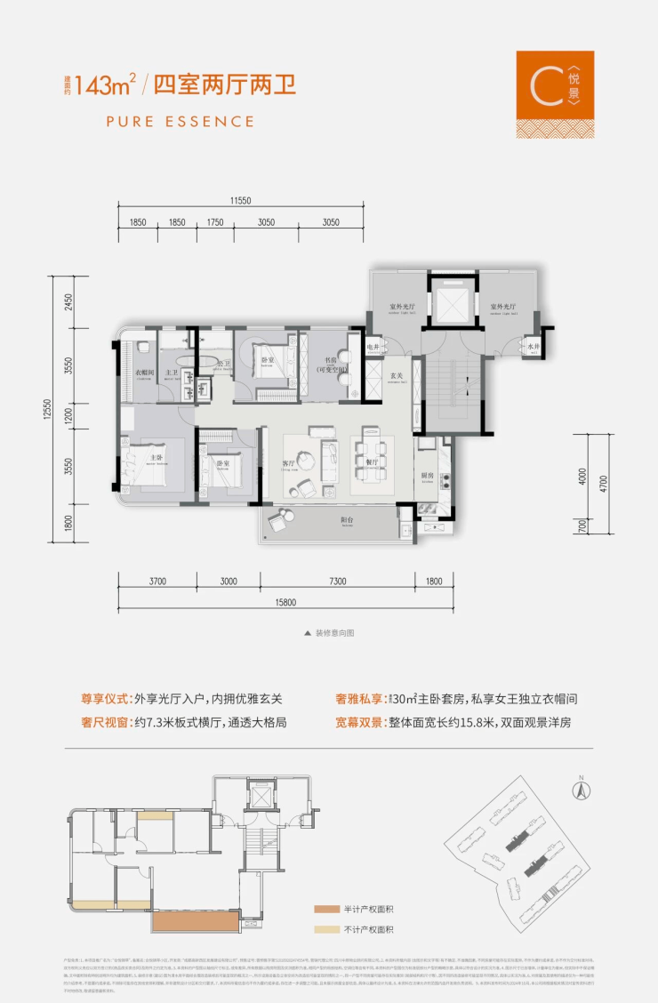 在产品上,着重打造光厅入户、极致大面宽的越级空间,重新定义高新西封面人居。