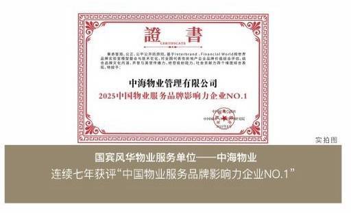 中海物业:行业唯一获得国务院国资委中央企业品牌引领行动首批秀成果服务品牌。
