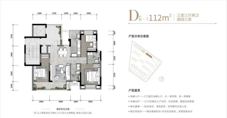 首开面积:112m²/116m² 三室三厅两卫