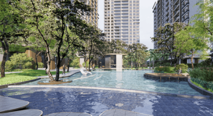 独创"双湖生活"体系,融合浮岛步道、流线湖岸、半岛会所等度假元素,实现"公园里的家"居住理想。