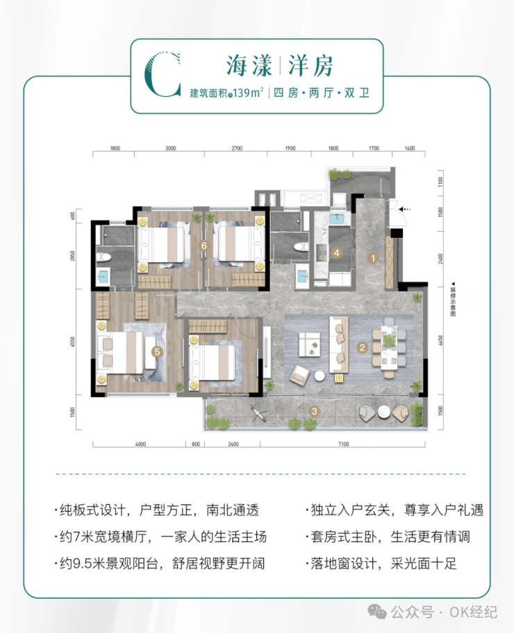 建面约139㎡板式宽境洋房 四房两厅双卫