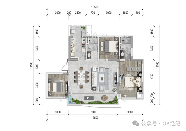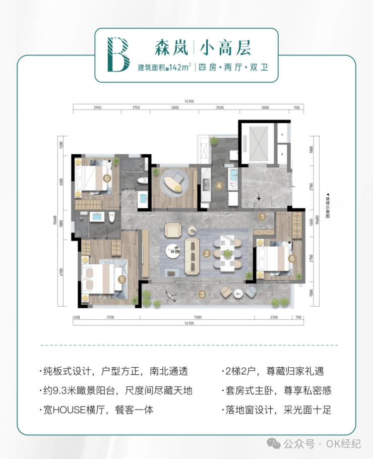 建面约142㎡板式瞰景小高 四房两厅双卫