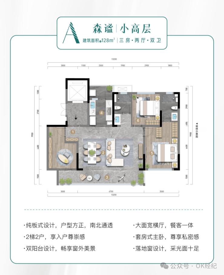 建面约128㎡板式瞰景小高 三房两厅双卫