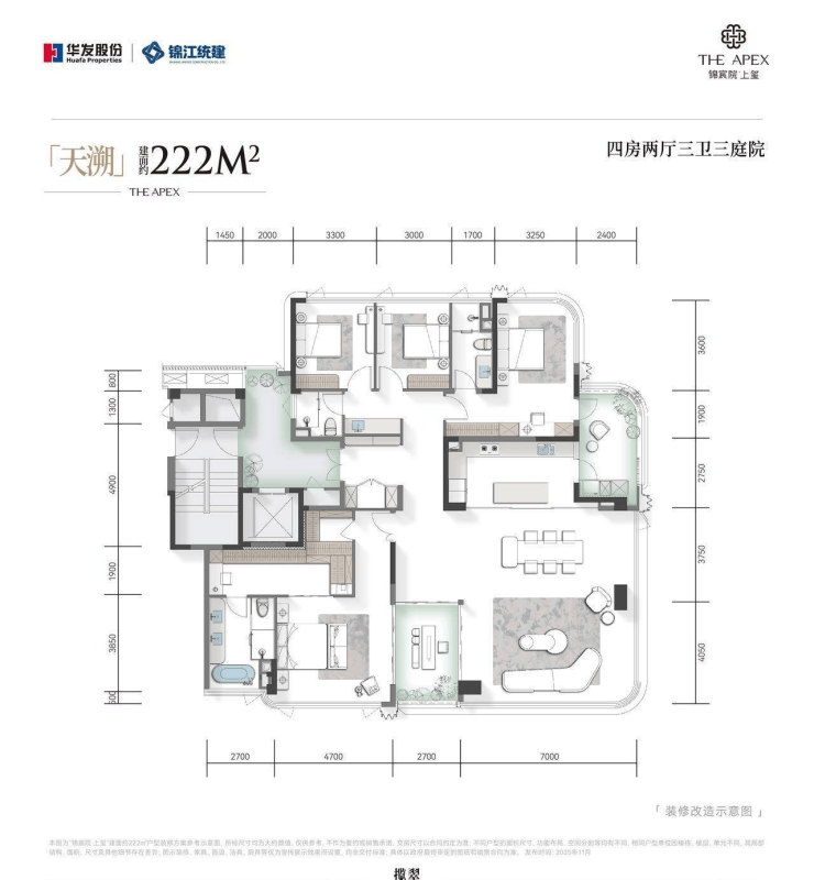 222m²端厅