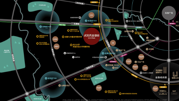 项目雄踞武侯黄金3.5环,地处机投桥TOD(规划) 核心,坐拥四大TOD与五条地铁线的磅礴规划。