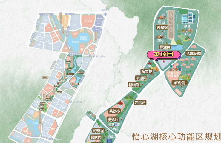 项目紧邻怡心湖,规划有“一湖七园”生态景观,包括体育公园、儿童友好公园等,实现“出则繁华、入则静谧”的生活环境。
