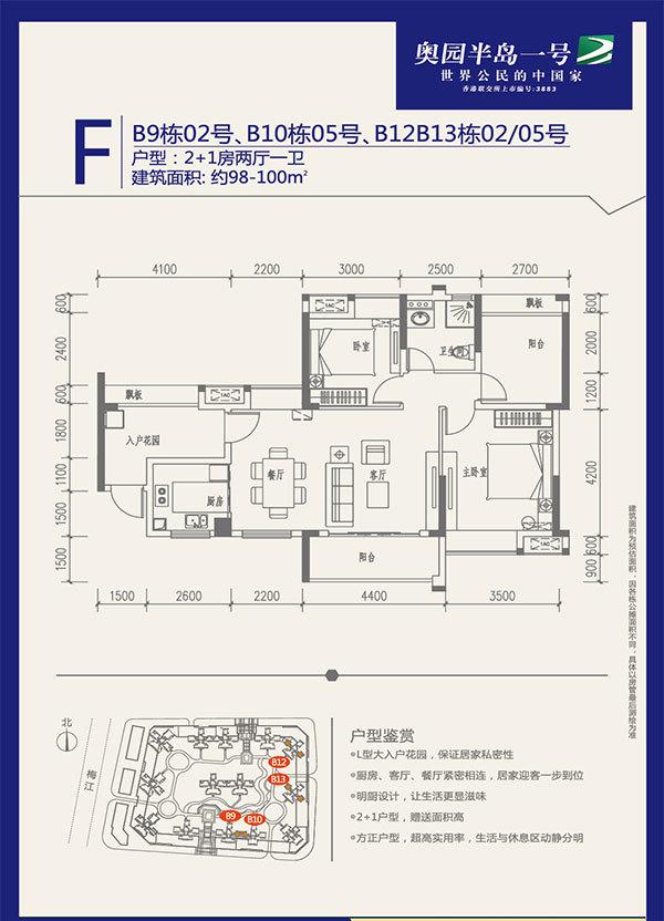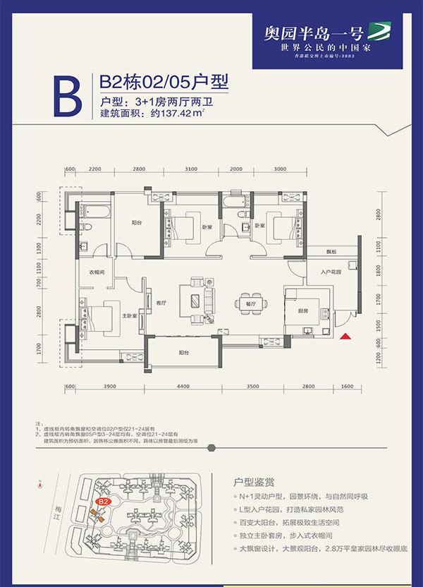 “奥园·半岛一号”位于山清水秀、人杰地灵的梅江区芹洋半岛,是梅州市芹洋半岛品牌战略发展区启动项目,更是知名上市房企【奥园集团】进军粤东市场的开山力作。 项目西临梅江,北接东山教育基地和客家文化产业基地,通过秀兰大桥西接江南中心区,经广州大桥南接江南新城,半径3公里内可到达东山中学、千佛塔、院士广场、亲水公园、汉剧院、嘉应歌剧院(在建)、金叶酒店、行政服务中心、江南汽车站、市政府等,地段优越,交通便利,环境优美,文教氛围浓厚, 户型方面,项目主打N+1刚需精品户型,规划有80-185㎡的两房至四房,规划总套数为1547套。 规划设计方面,采用围合式布局,传承客家围屋设计理念,充分考虑朝向、采光和景观等因素,基本做到户户带入户花园,南北通透,限度确保每一户都能欣赏到梅江的美景或小区内的园林景观。 社区配套方面,本项目首创高7.35m入户大堂和架空层泛会所,为业主提供广阔的邻里交流互动空间。小区内配套有泳池、乒乓球室、羽毛球场、篮球场等,为业主营造健康养生的生活方式。首期社区商业街将引进银行、超市、休闲餐厅和时尚商店等,二期将配套社区幼儿园、尊贵会所、大型生活超市和风情商业街区,限度满足业主的各项生活起居需求。