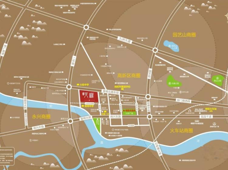 长虹天樾项目位于高新区普明北路西段和普乐路交汇处(火炬 ),处于绵阳城市发展战略的核心地带,也是绵阳城市发展的重点和热点区域。项目占地约160亩,总建筑面积约32万平米,包含精品高层、花园洋房、精品别墅多种产品形态,是目前高新区少有的低密度高品质大盘。 整个项目外立面采用新亚洲建筑风格设计,中庭景观以“与自然一起生活” 为主题,运用花与木,光与影,细胞与律动等元素,以自然的手法描绘现代新亚洲景观的典雅与高贵。项目南侧局部有堆坡设计,形成了宽约15米,长约300米的立体景观带,它不但增添了别墅的私密性,还带来了新鲜的氧气,同时还能隔离灰尘、降低噪音。在东侧,项目打造了约20000平米的运动主题公园,千米跑道、足球场、儿童游乐场等一应俱全的场所及设施,诠释着 “首席全生命运动周期”的新主题。 项目自身打造约1万平米特色风情商业街及周边商业配套,满足日常居家需求;从幼儿园到高中 体系,满足不同年龄段孩子 需求;周边完善的医疗配置,为您和家人的健康保驾护航。 长虹天樾以多层次产品相结合,融入自然、运动理念,将居住舒适性提升,成为城市之中的精品家园。