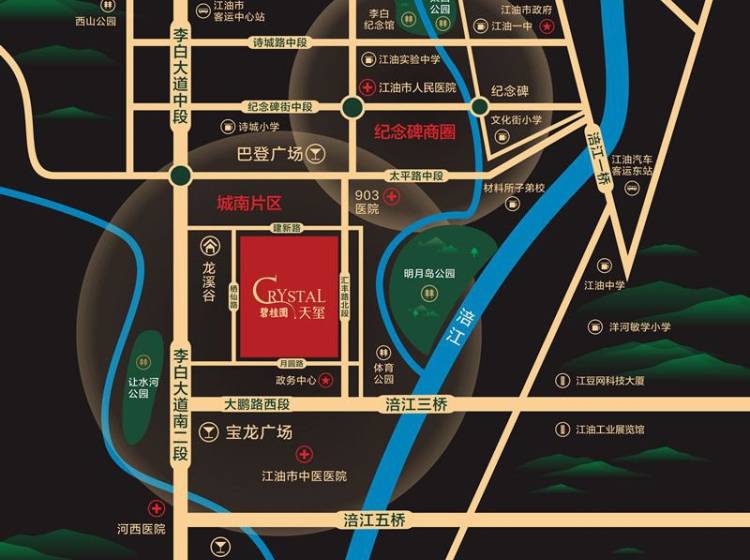 碧桂园2017年进驻江油市,碧桂园·天玺作为碧桂园在江油的又一力作,以全新的设计理念和产品风格亮相江油,专注品质和细节,革新江油居住品质,树立江油当代城市人居新标杆,带给江油城市人居新体验,开启江油房地产市场发展新篇章。 江油向南 玺见非繁 碧桂园·天玺项目位踞江油市核心腹地,全维立体交通,转瞬通达全城。项目周边名优教育资源丰富,成就孩子成才之路,同时兼具成熟的生活配套及优质自然生态资源,社区内更是打造了大型商业街区,真正体现了,江油向南·玺见非繁!
