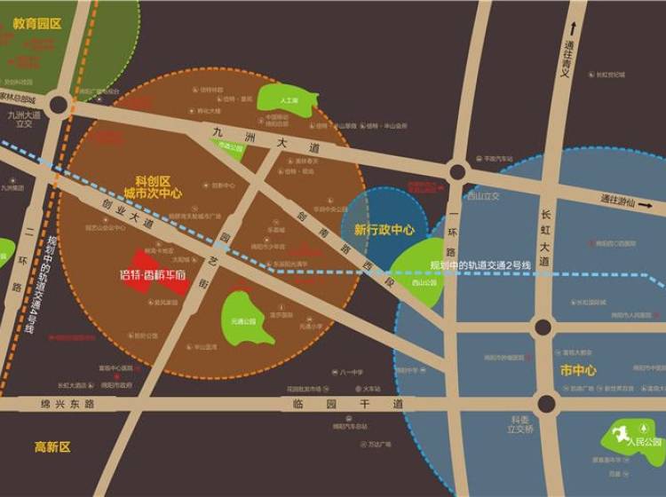 倍特·香槟华府项目位于绵阳科创园区,树高卡地亚和长兴太阳城旁,毗邻科技城创新中心,距建设中的市政行政中心直线距离约3公里。项目周边交通便捷,紧邻创业大道、园艺街,通达性强,距市中心约5公里,距高新区约1.5公里。地块周边有学校、企事业单位、银行等,北侧规划有铜锣湾综合体项目。