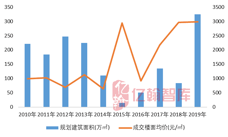 图1:绵阳2010-2019年宅地招拍挂量价成交走势