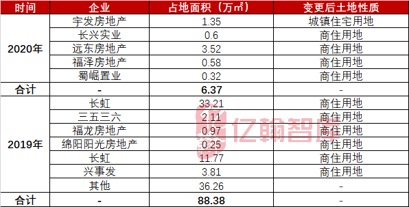 表3:绵阳2019-2020年土地使用权变更情况