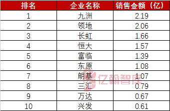 表1:2020年4月绵阳房企销售金额TOP10
