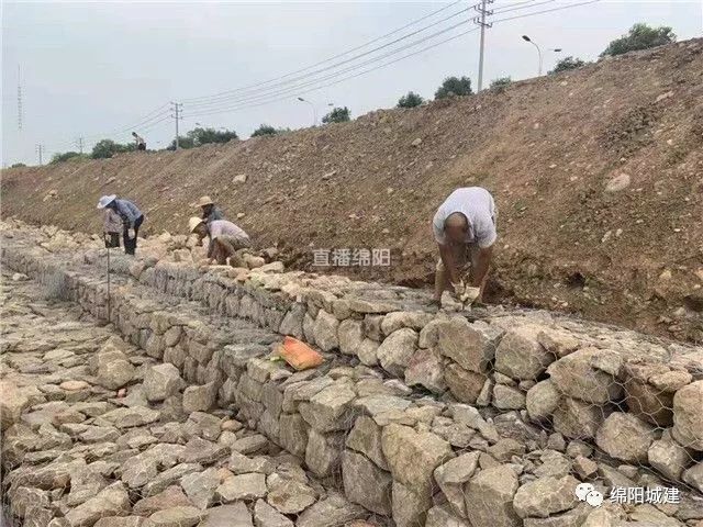 草溪河一标段部分地段处于河流弯道处,汛期较大的水流冲刷将对边皮造成影响,为了边坡安全,施工单位已经开始给边坡穿好“防护衣”,十多名工人正在加班加点给边坡安装镀锌石笼,预计10天全部完成边皮保护工作。
