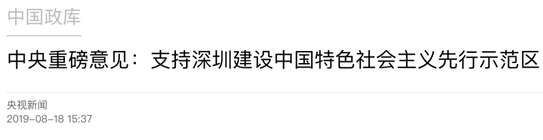 刚刚,央视新闻特发头条,《中央重磅意见:支持深圳建设中国特色社会主义先行示范区》。
