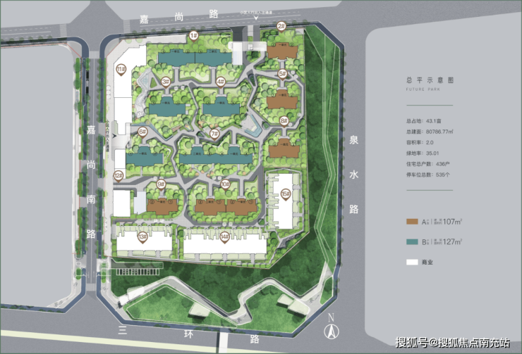 【泉水路TOD】:以5号线泉水路站为圆点,辐射500米打造TOD核极,商业用地、立体交通体系、功能服务向TOD聚集,本案自带34亩商业用地,一街之隔有8亩商业用地,建成后将为区域增加二处商业地标,满足区域高端购物需求。