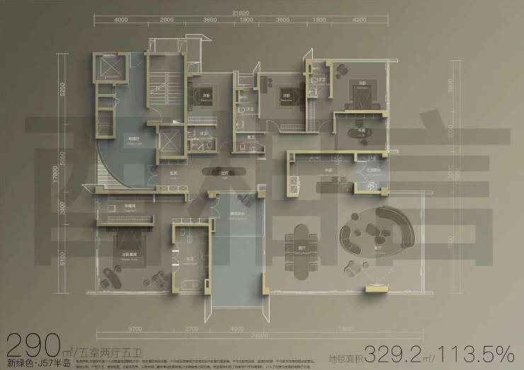 建面约290平套五