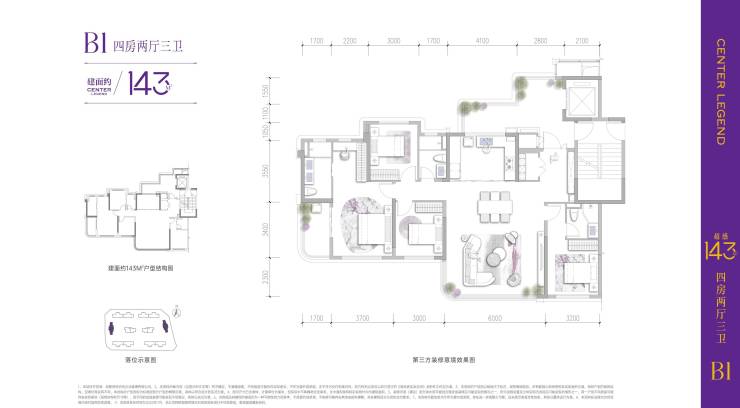 建面约143平套四