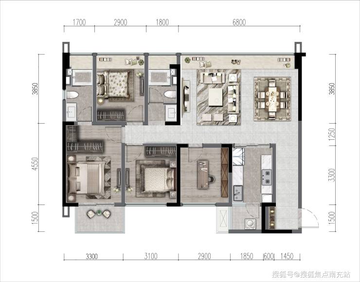 交付标准:2900元/㎡精装交付(含三大件)