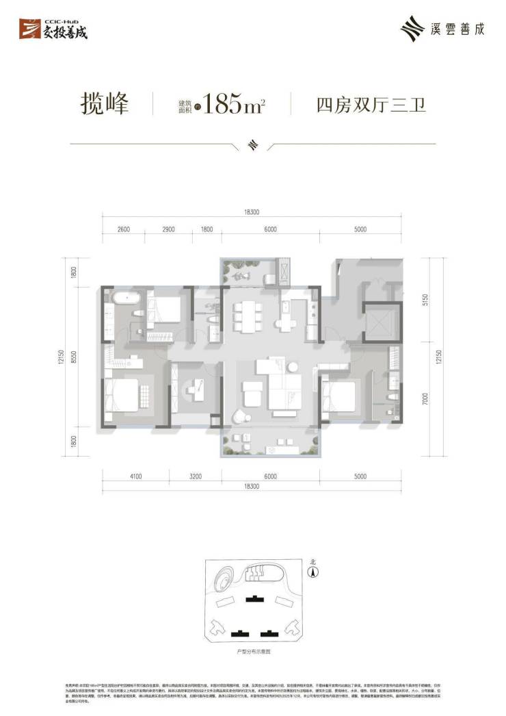 建面约185平套四