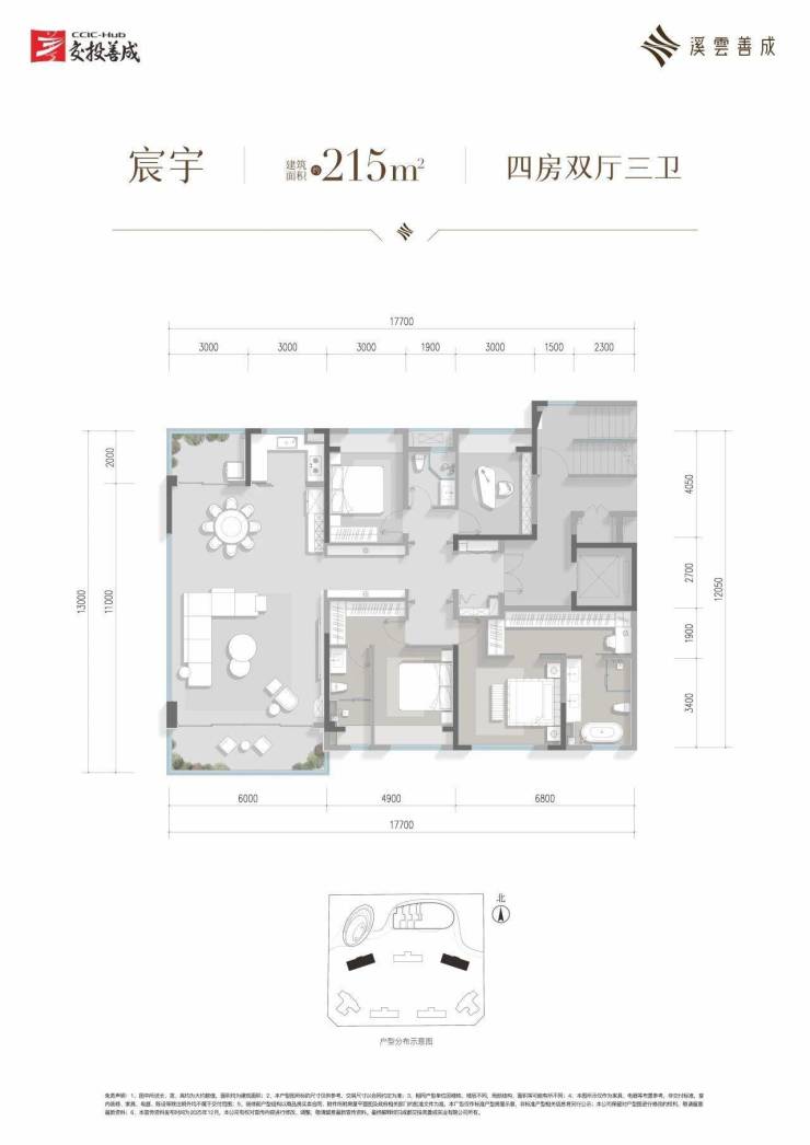 建面约215平套四