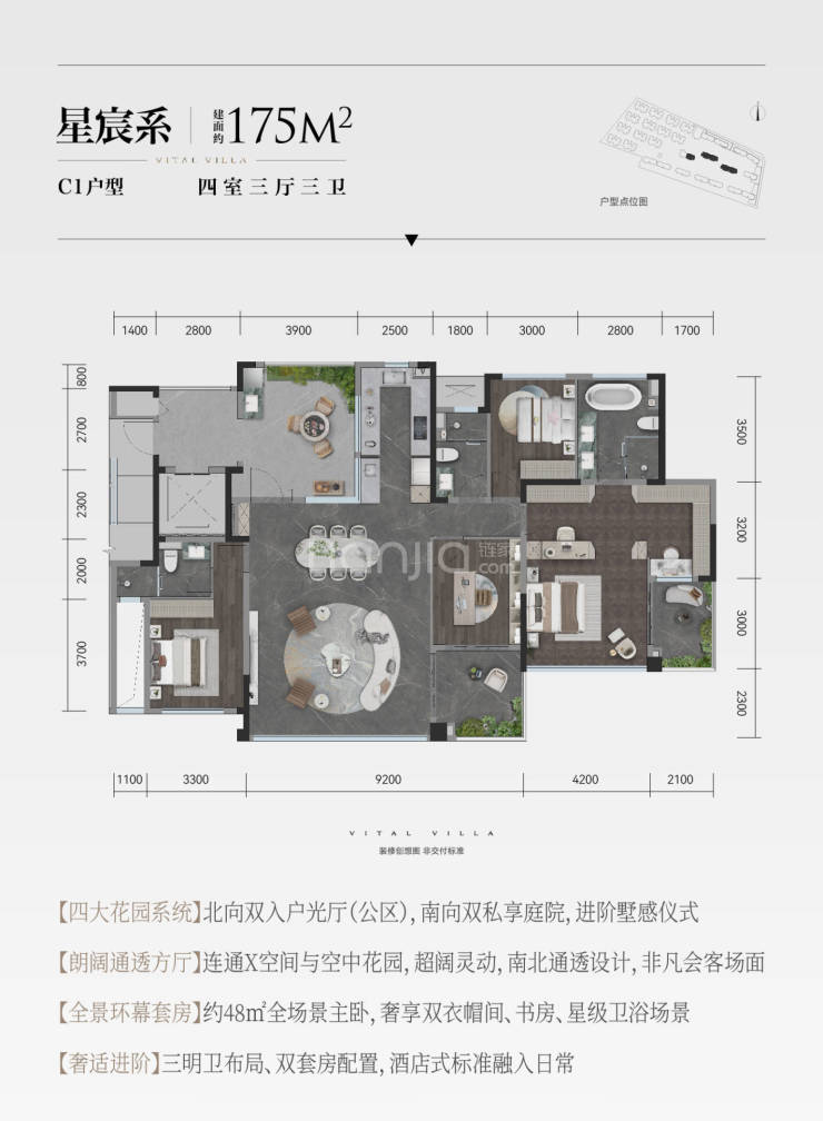 建面约175平套四