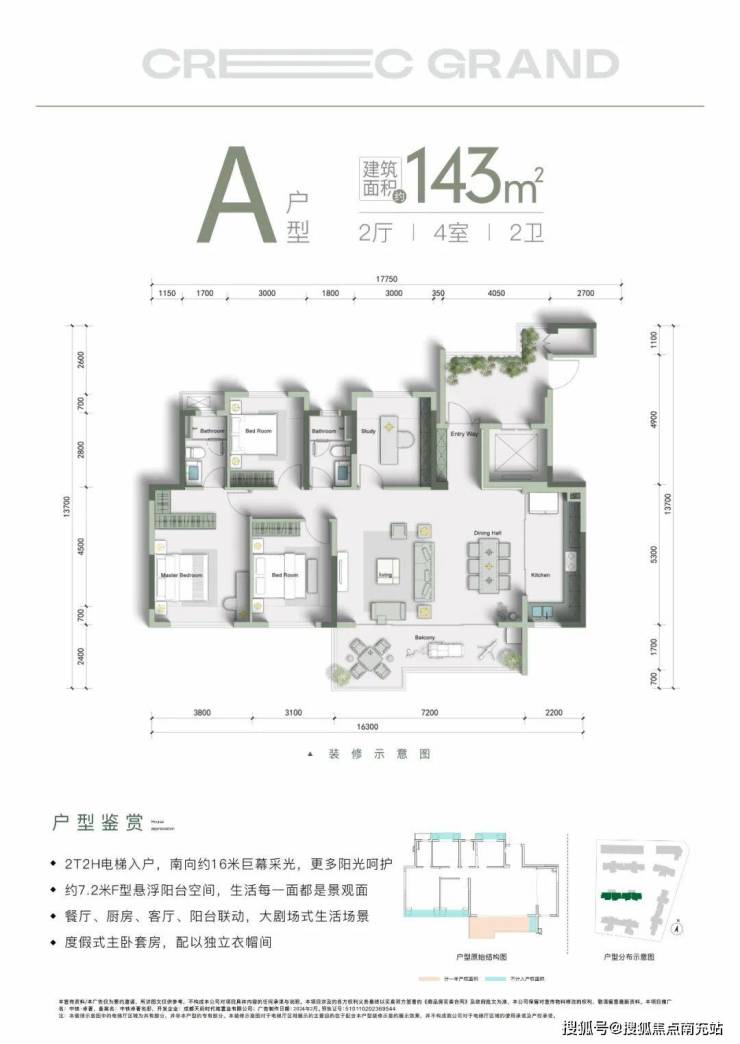 户型面积方面,包含2梯2户或2梯3户的三房、四房产品,建面约116~143㎡不等,共5款标准层户型,如下图: