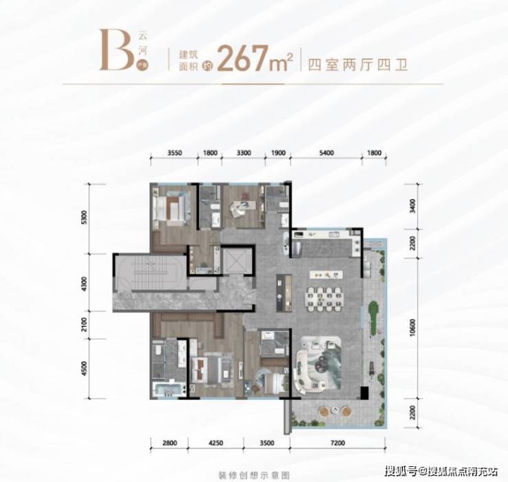 在售面积:大平层:267㎡叠拼:186-284㎡