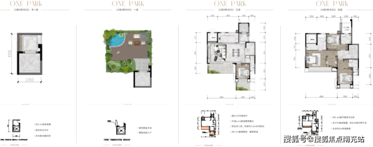 明信·天府壹号在中叠户型上创新性地配置了一楼花园,据了解,这种设计在全成都目前来说尚属首创,十分新颖有趣。通过私家电梯可直达中叠三楼,这里是餐客厅及老人房区域。其主要亮点为大面宽采光与双阳台设计,敞亮的采光搭配3.3米的室内层高,让客厅区域更显豪华大气。老人房带有独立露台,在空间拓展上更为灵活多变,同时也增强了房间的通风效果。三个房间均规划有卫生间,休息时互不干扰,保证了居住的独立私密性。主卧室约6米的采光面,南北通透,夏季时在卧室就能感受到江安河的微风拂面。【下叠 建筑面积约288㎡】