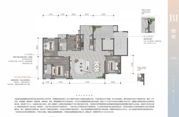 建面约130㎡(三室两厅两卫)——270°环幕采光,90°转角全景舱,阳光前厅
