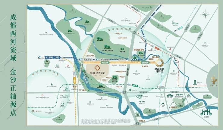 27/2/9/4无缝换乘:距27 号线二期清百路站(规划中)约300米,两站可换9号线,10站通达金融城;4站实现与4号线“成都西站”换乘,4站可至羊犀立交换乘 2 号线,形成“主干道+地铁”的黄金交通配置。