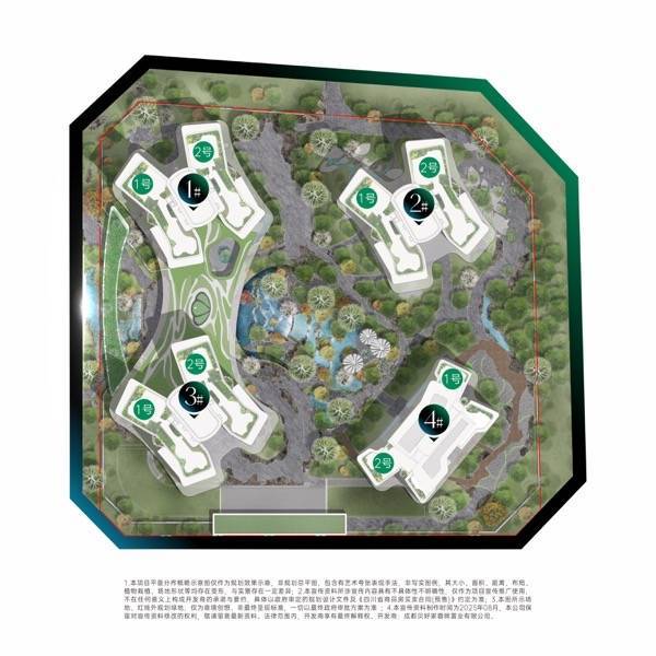 3. 地标级建筑设计:蝴蝶形围合布局,4栋弧形塔楼错位排布,户户无对视+270°环幕阳台,30米面宽+66米超长采光面,直面交子云塔等18栋地标,视野无遮挡