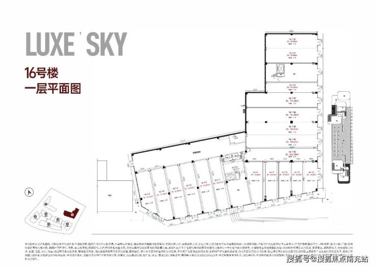 1F合计19套商铺, 面积1482.11㎡。面积区间42.50-111.38㎡。