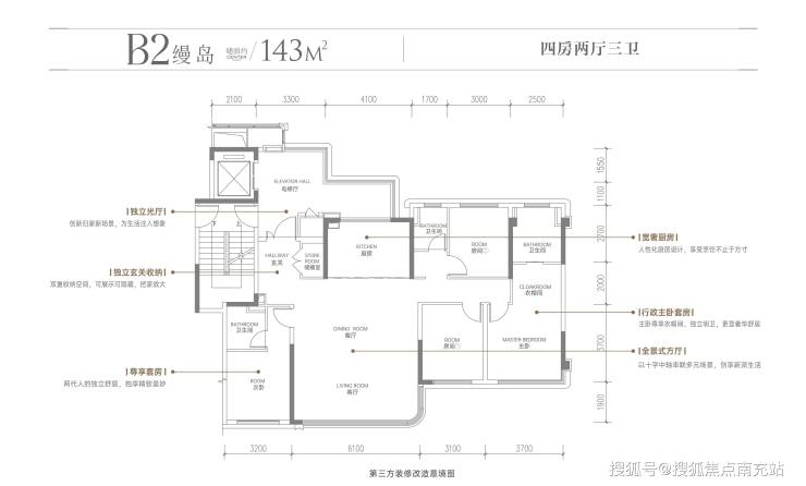 侧重实用与收纳,总价约475-518万元。同样为纯板式南北通透格局,四室两厅三卫设计,相较于前两款143㎡户型,该户型更注重空间实用性与收纳功能,规划独立储物间与多处嵌入式收纳设计,有效解决多成员家庭的储物痛点;主卧尺度适中,配备独立卫浴,次卧均为方正格局,无空间浪费,动静分区更清晰,兼顾老人、小孩居住的便利性,性价比突出,适配注重居家实用性、有多成员居住需求的高阶改善家庭。