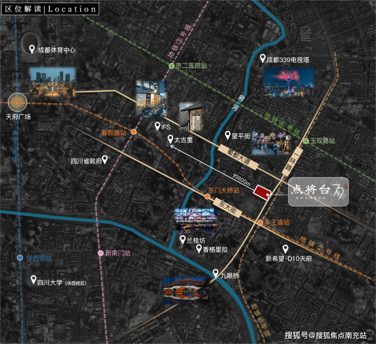 项目位于成都市区一环内,紧邻太古里,直线约3公里范围内拥抱兰桂坊、九眼桥等城市地标,所在区域更是第一张纸币“交子”的诞生地,历史底蕴深厚。